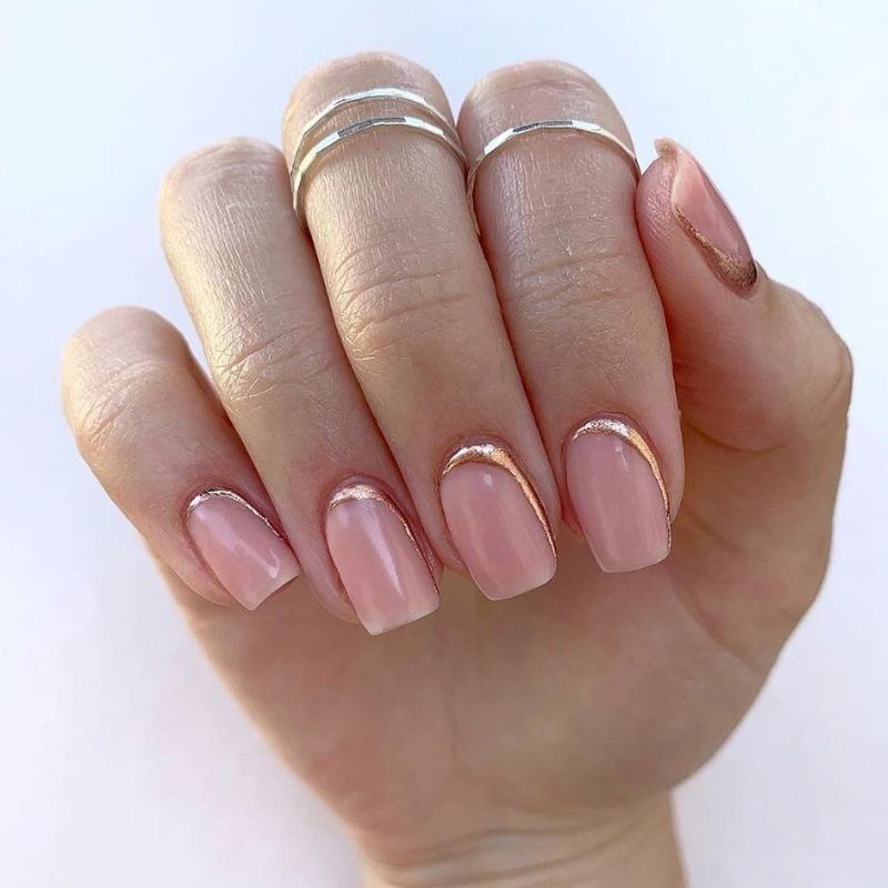 18. Nude Nails with Gold French Curve