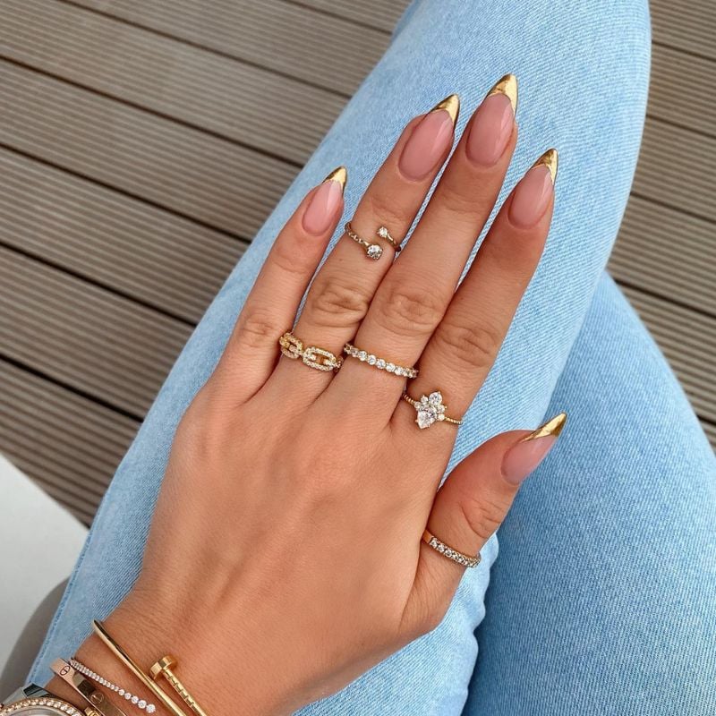 17. Elegant Almond Nails with Gold Tips