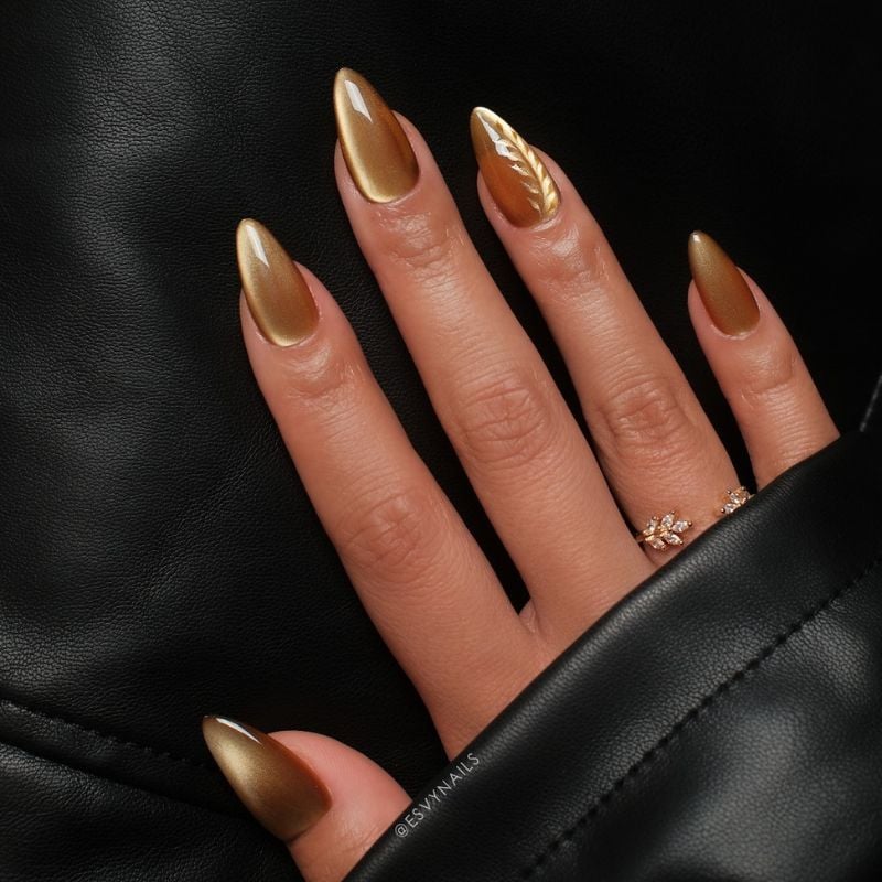 23. Bronze Gold Almond Nails