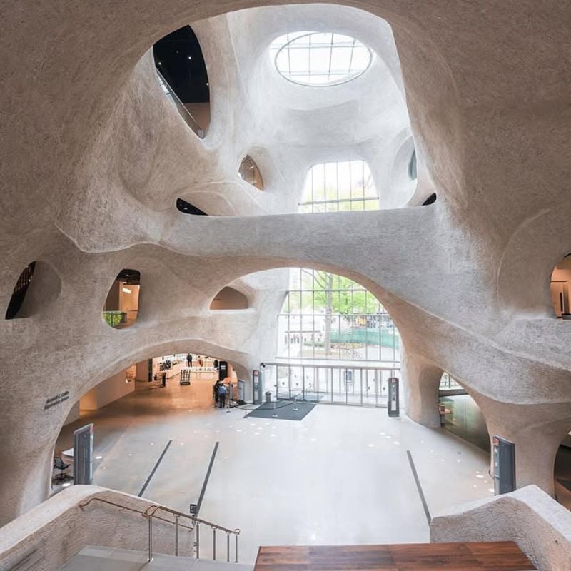 Sculptural architecture and organic curves that feel like walking inside a living structure.