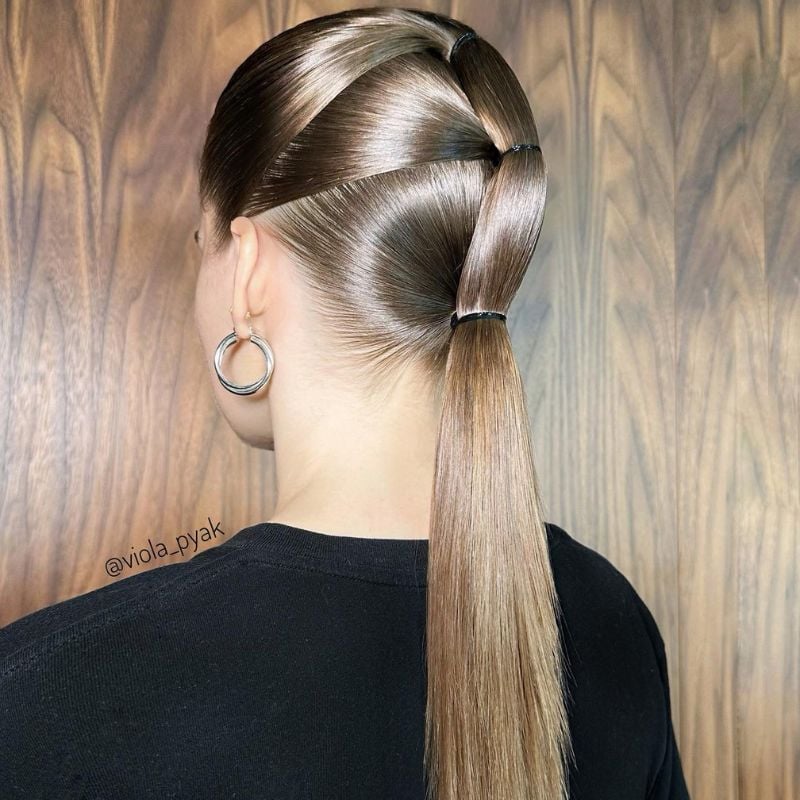 1. Sleek Segmented Ponytail