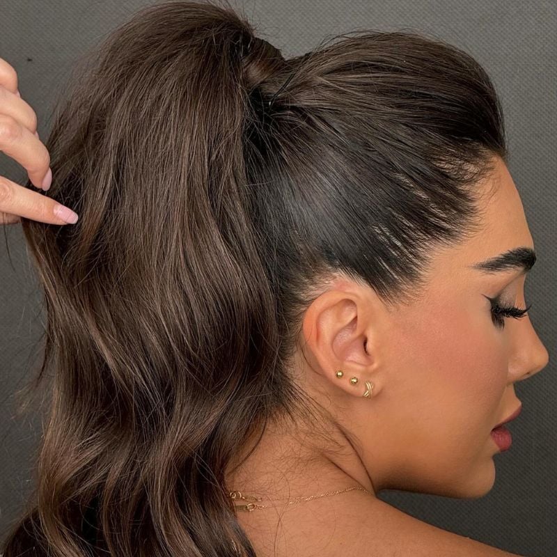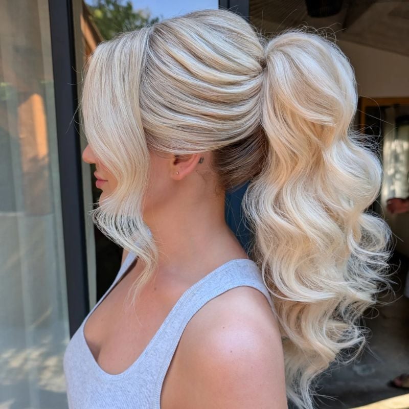 A high ponytail with soft waves and volume for a glamorous touch. Perfect for date nights or special celebrations.