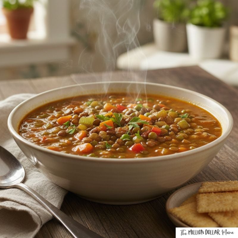 Lentils are one of the best budget-friendly staples for cold weather. They cook quickly, don’t need soaking, and make a hearty, protein-rich soup that feels substantial without meat.