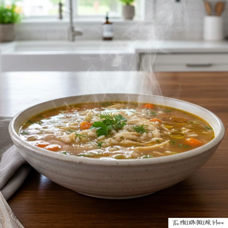 Rice stretches the soup into a complete meal. It’s simple, comforting, and ideal for colder days when you want something warm but easy to digest.