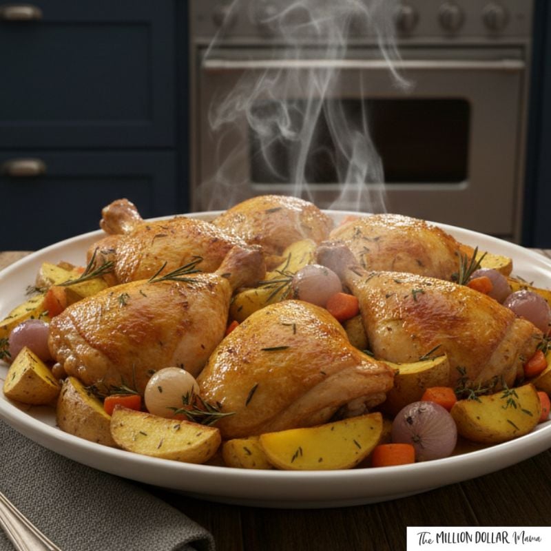 - Ingredients: Chicken thighs, potatoes, oil, spices