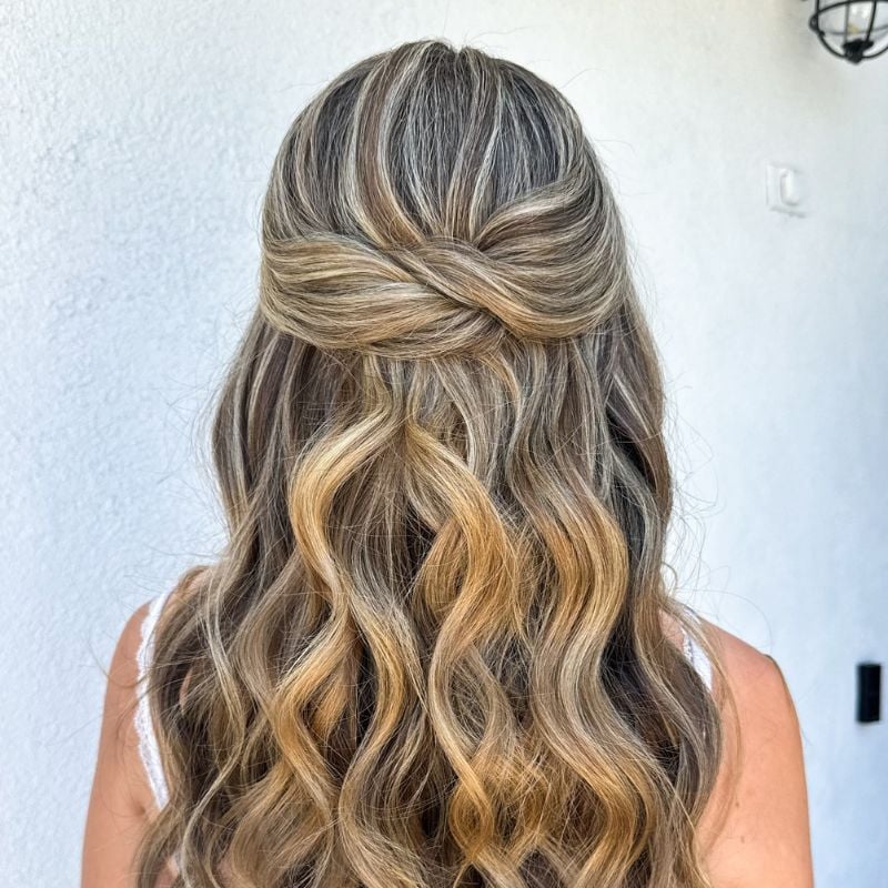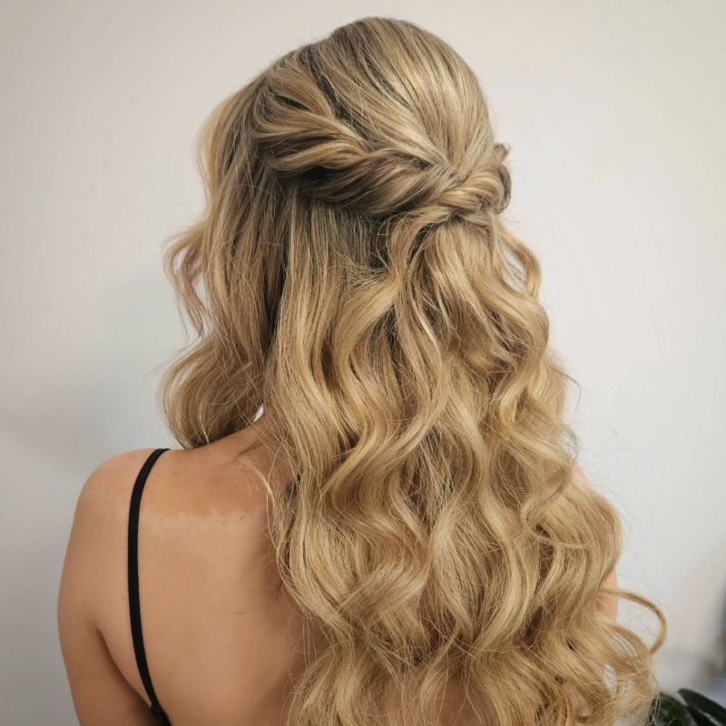 10. Classic Twisted Half-Up on Blonde Waves