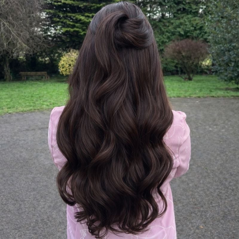 Half-up hairstyles sit right in that sweet spot between practical and polished. They keep hair out of your face, add structure to your look, and adapt easily to workdays, casual plans, and last-minute outings. They’re ideal for busy mornings, evening events, a formal dinner, or a wedding where you happen to be the bride (haha)? They provide a perfect balance where you can show your face and display the beauty of your hair, all at once.