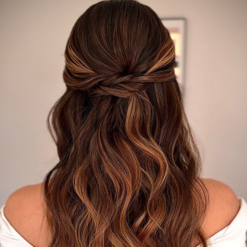 Looking for something more formal? This elegant half-up style is also perfect for weddings or special events, just like these easy updo wedding hairstyles for long hair.