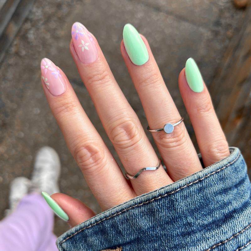 13. Mint Green & Pastel Floral Almond