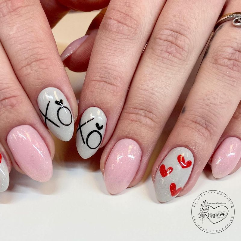 12. February Pastel Hearts Accent Mani