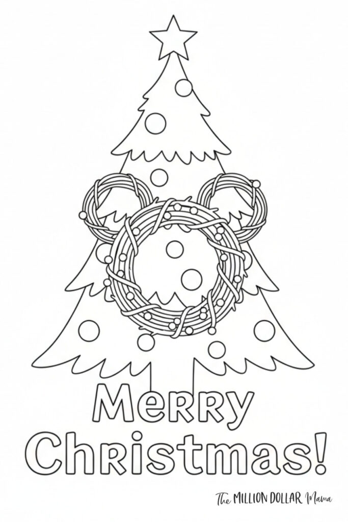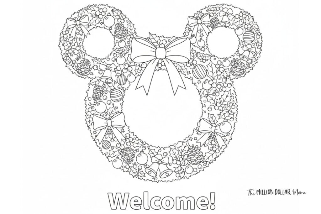 This beautiful Mickey wreath will look amazing after your kids color it over their rooms’ door or at the entrance of your house. Or perhaps by your foyer to greet your guests on Christmas Eve?