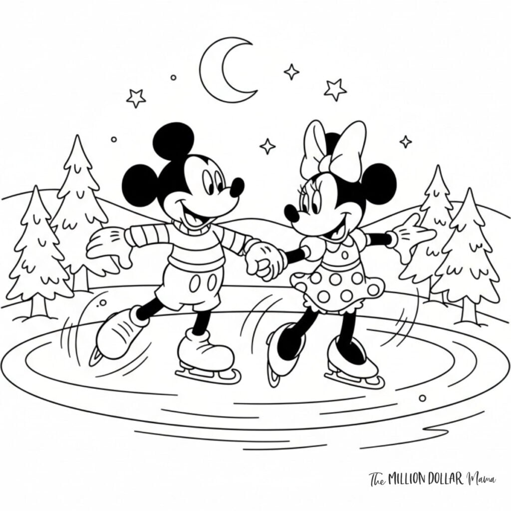 10. Mickey and Minnie Ice Skating on a Frozen Pond