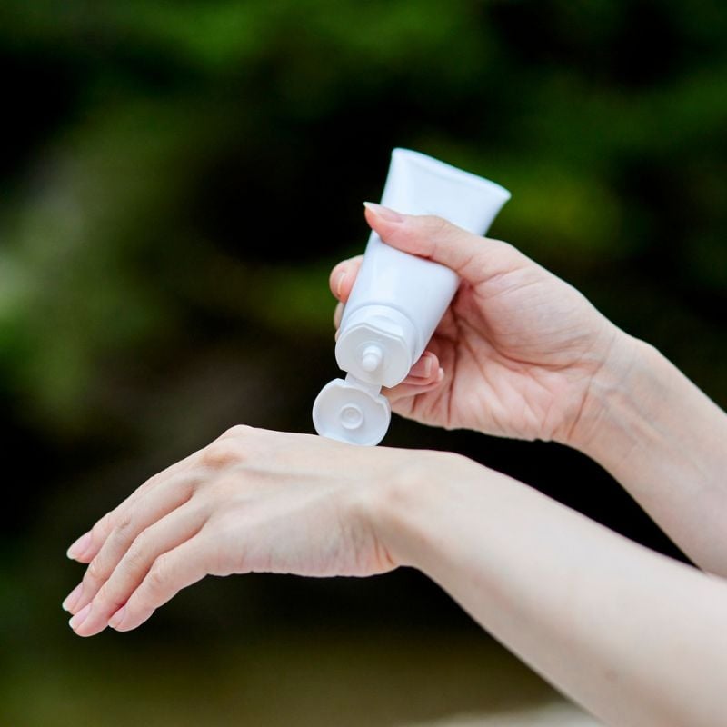 - Apply to face, neck, and hands
