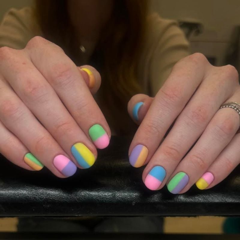 Soft green, lavender, butter yellow, powder blue, peach, and milky pinks are leading transitional tones. These shades reflect spring psychology, renewal, softness, and lightness. Unlike neon brights, pastels are wearable, versatile, and easier to maintain under gel.