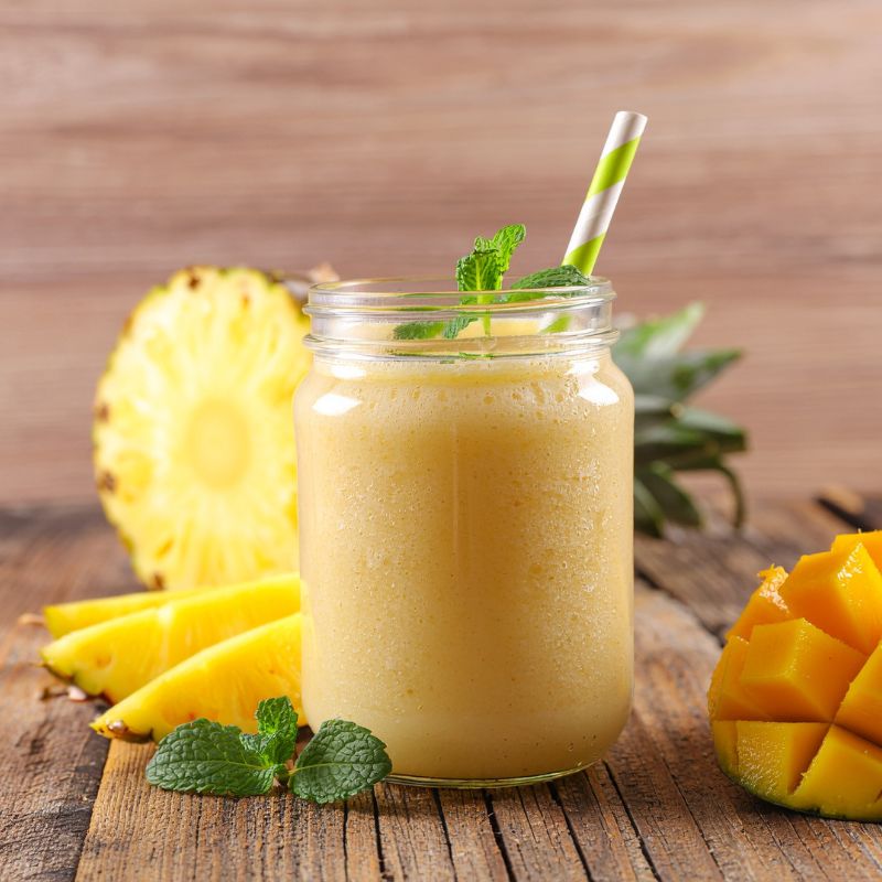 Preparation: Blend mango with pineapple and lime juice. Pour over ice and top with coconut water.