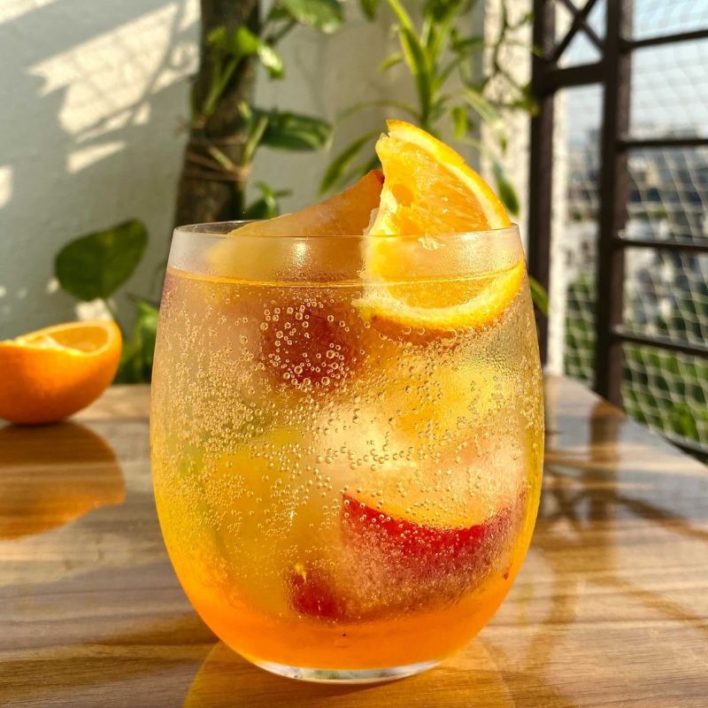 Preparation: Muddle berries, add orange juice, and top with sparkling water.