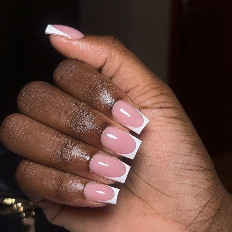 A soft blush base with crisp white tips that beautifully contrast richer complexions. Timeless, refined, and universally flattering.