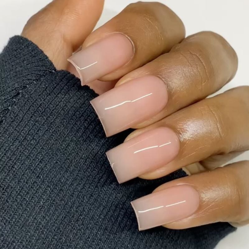 A subtle nude-to-clear gradient that gracefully elongates the fingers. Clean, polished, and versatile.