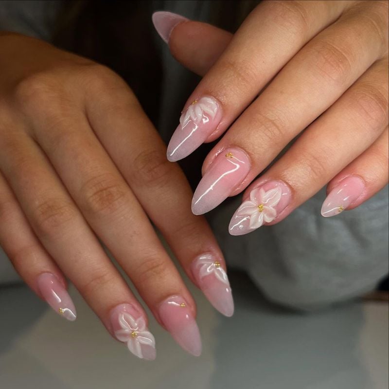 16. Soft Pink 3D Floral Almond